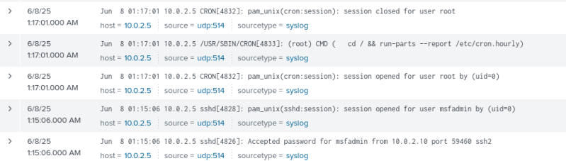 Lastly, we will use the Kali VM to connect to Metasploitable 2 via SSH and generate a successful login log.